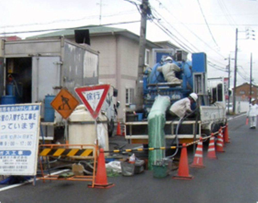2箇所の作業坑を掘削するだけでよく、クリーニングから端末処理まで1日で施工でき、入替え工事に比べ大変経済的です。