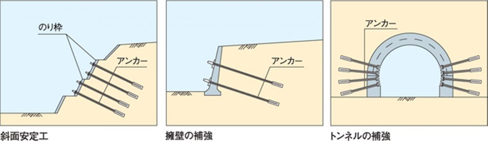 テンションクラックが生じず、せん断すべり抵抗の大きい圧縮型アンカーは、引張特性やクリープ特性が安定し、繰返し荷重にも安定した特性を有しています。