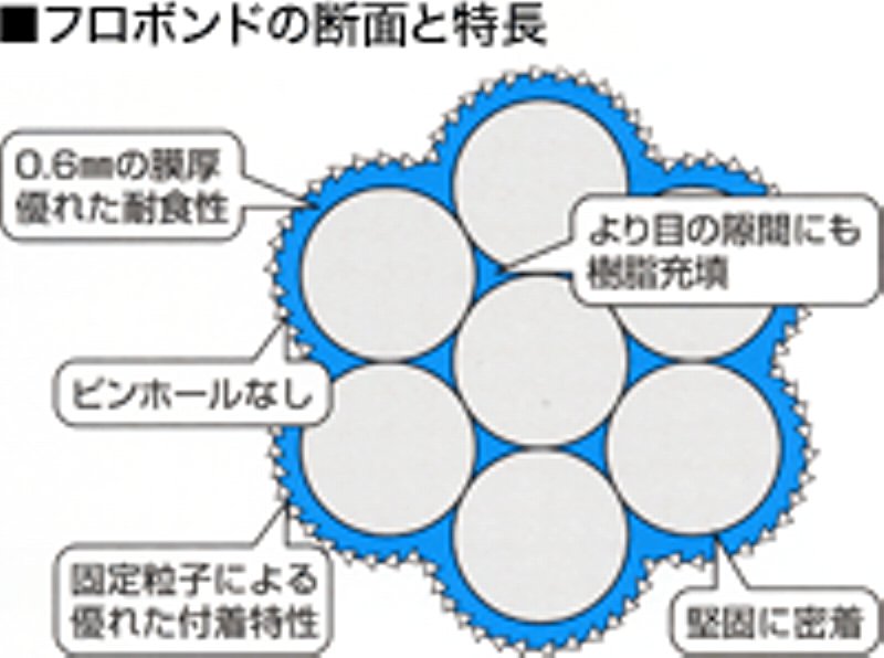 スーパーフロテックアンカー工法は、優れた防食層(エポキシ樹脂)で被覆されたPC鋼より線を緊張材(フロボンド)に使用しているため、耐食性能に優れた永久アンカー工法です。