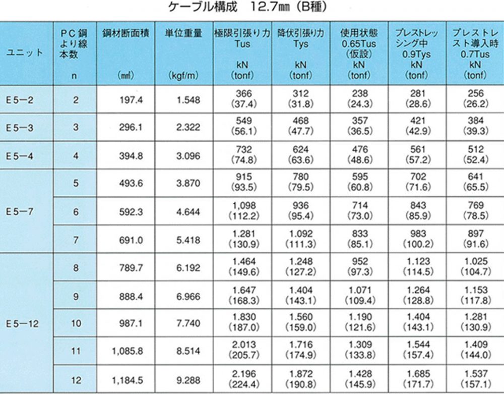 φ12.7mmとφ15.2mmのPC鋼より線を標準使用し、必要耐力に応じて本数を調整し結束加工できるため、地盤の状況に対応した無駄のない施工が可能です。