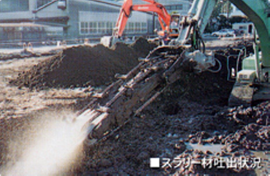 改良材がスラリー状であるため、粉塵等が発生せず、施工中の騒音・振動も低く周辺環境にも優しい工法です。