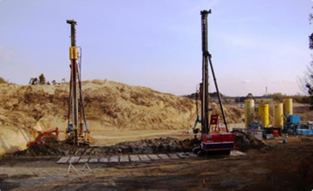 CDM工法は、セメント系スラリーと軟弱地盤とを混合処理機で撹拌混合し、現位置で所定の強度に固化する工法です。