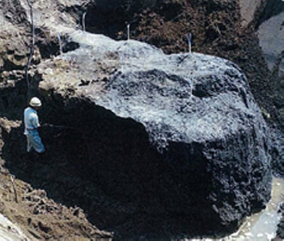 多数の吐出口から同時に低吐出量で長時間注入することで、広範囲な土粒子間浸透ができます。