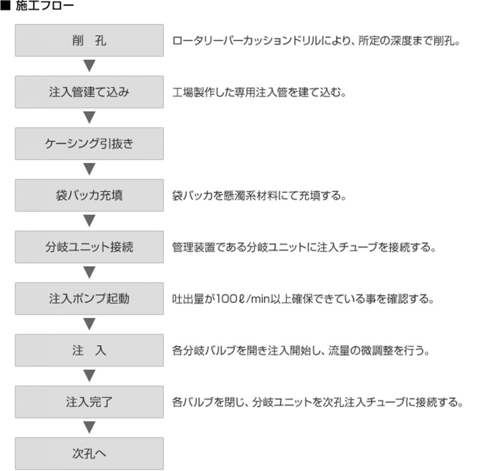 上下を袋パッカで挟まれた柱状浸透空間から、大吐出量での浸透注入が可能です。