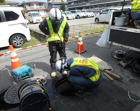 私はパイプメンテナンス部で、主に小さな口径の下水道管路の更生工事の施工管理をしています。更生工事を簡単に説明すると、既にある下水道管をきれいにして、更に長い期間、下水道を使えるようにする工事のことです。