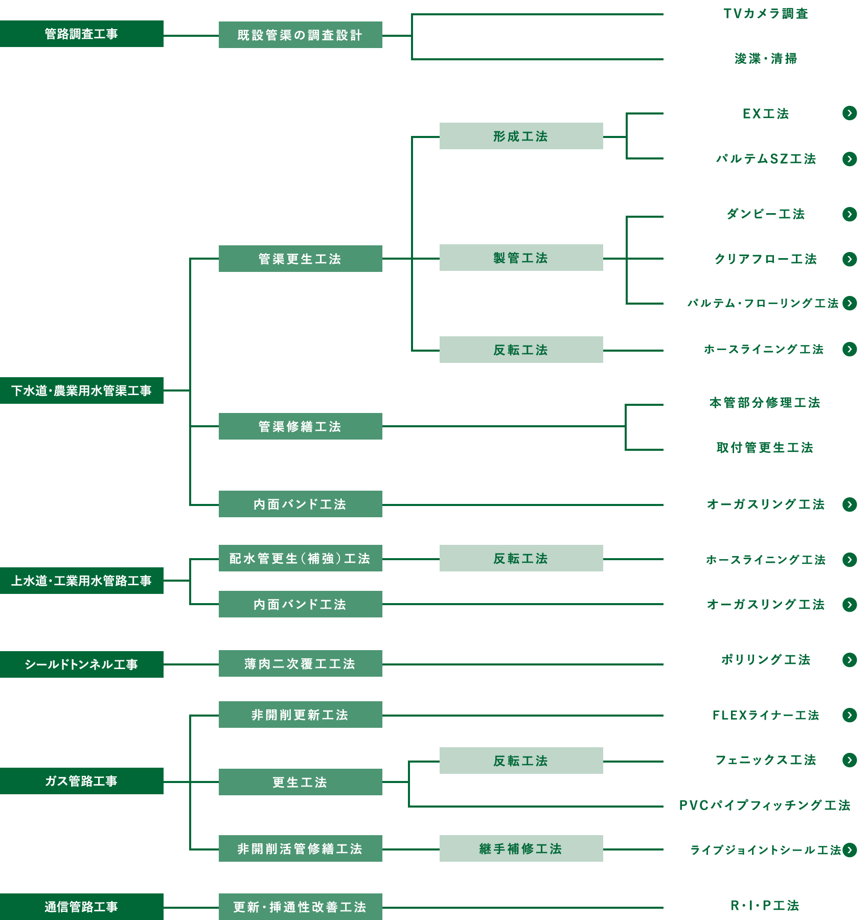 社会生活に重要な影響を与える老朽化した上・下水道やガス管路を、 非開削で恒久的に補強・更生し、新管の性能を蘇らせます。 豊富な経験と実績に基づき研究開発を重ね、 災害時に大切なライフラインを確保するための技術・工法を提供しています。